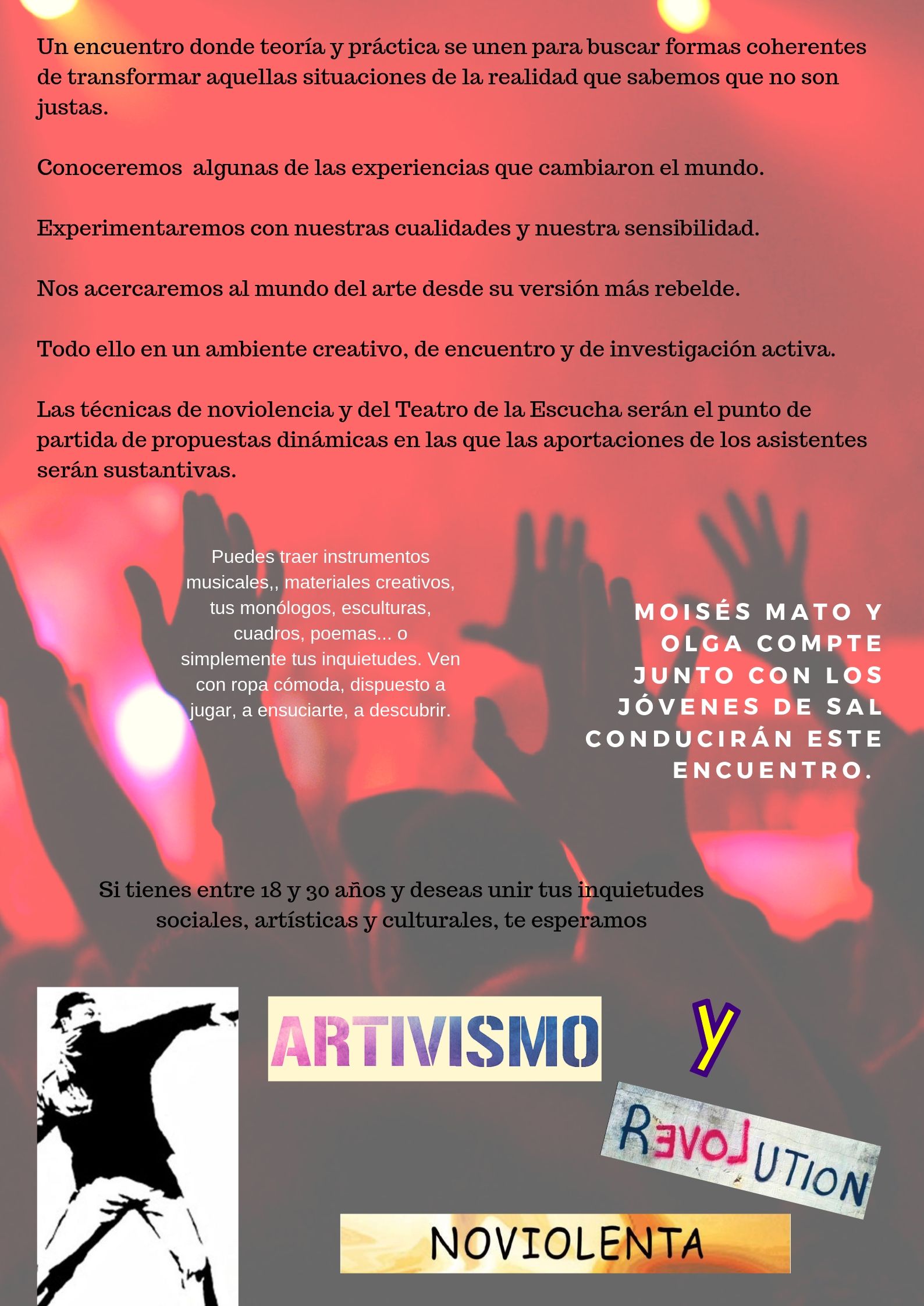 Para más información puedes contactar en el correo informacion @ encuentroysolidaridad.net o en el teléfono 669682367